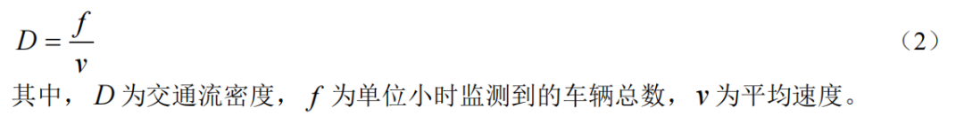 其中,D為交通流密度,f為單位小時(shí)監(jiān)測(cè)到的車輛總數(shù),ν為平均速度。