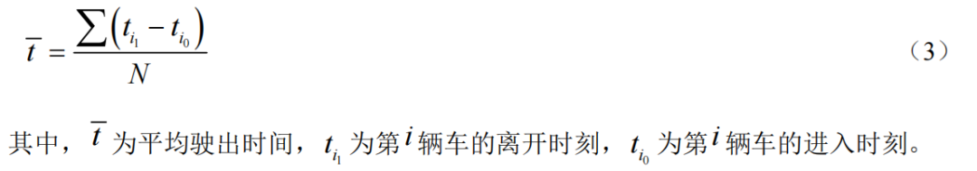 平均駛出時(shí)間是指所有車輛通過(guò)某路段所耗時(shí)間的平均值,計(jì)算公式如下: